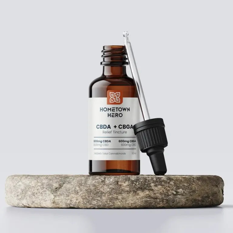 With a specially formulated blend of natural, hemp-derived cannabinoids and organic MCT oil from coconuts, Hometown Hero's CBDA + CBGA Tincture offers soothing relief in every drop.