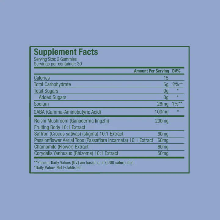A gummy that’s free from sugar and melatonin, featuring a soothing and rejuvenating mix of herbs and super mushrooms.
