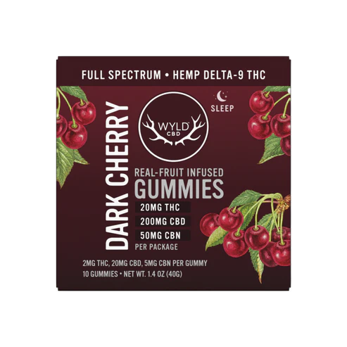 WYLD's 10ct Dark Cherry Sleep Gummies 20mg Delta-9, 200mg CBD, & 50mg CBN